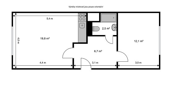 • Elektřina: 1 400 Kč měsíčně (převod na nájemce, kalkulováno pro 2 osoby)